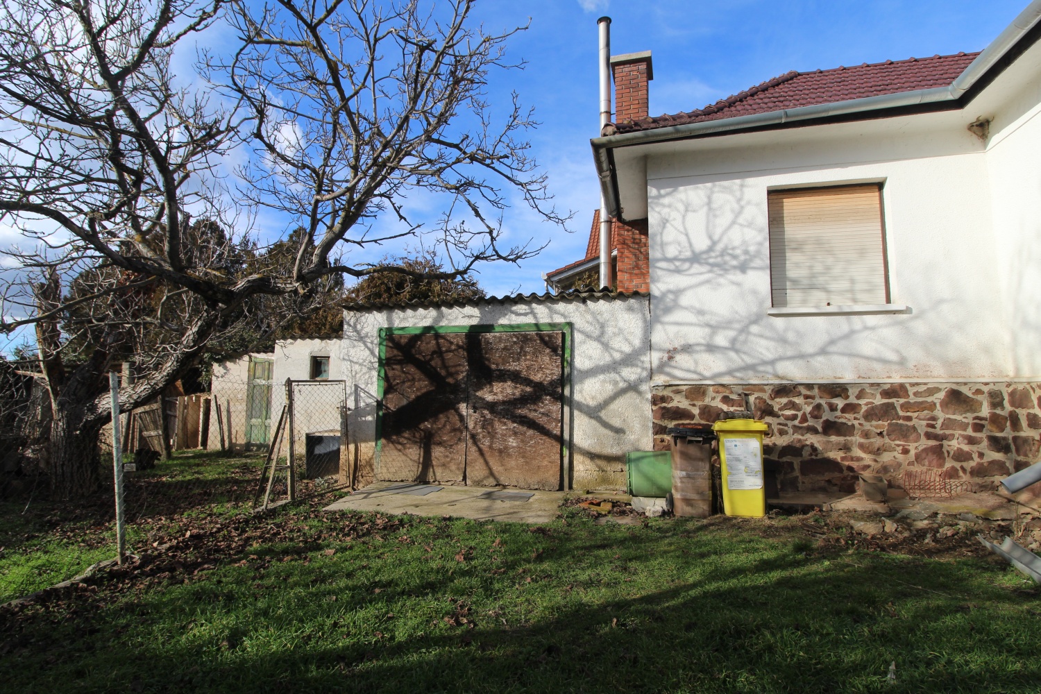 A garázson kívül a telken melléképületek, néhány tőke szőlő és mandulafák.
