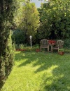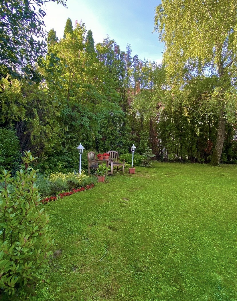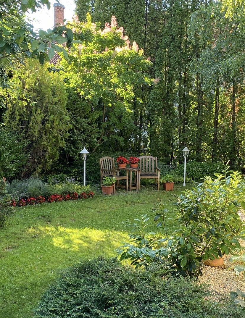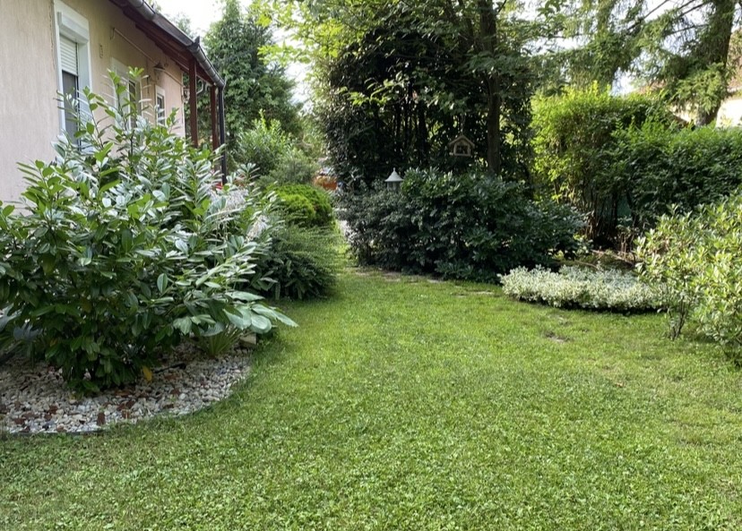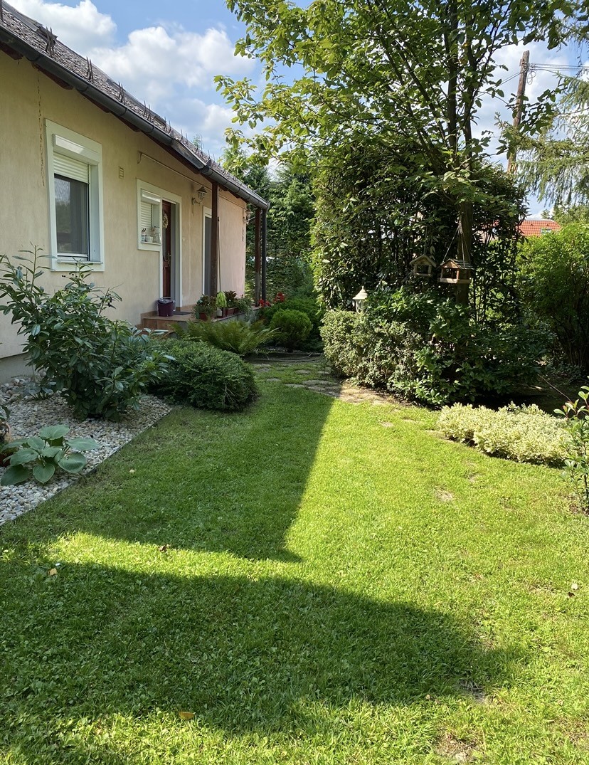 A ház az utca zajától távolabb helyezkedik el nyeles telken, maximálisan intim környezetben.