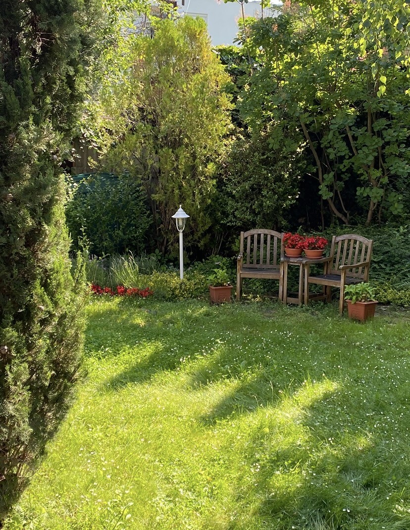 A déli tájolású hatalmas teraszon eső- és szélérzékelős WAREMA napellenző szolgálja a kényelmet.