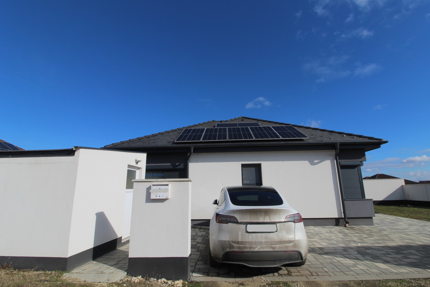 A kiváló, délnyugati tájolásnak köszönhetően megvalósult egy 10 kW-os napelem rendszer kiépítése ami szinte nullára redukálja a villanyszámla költségét!